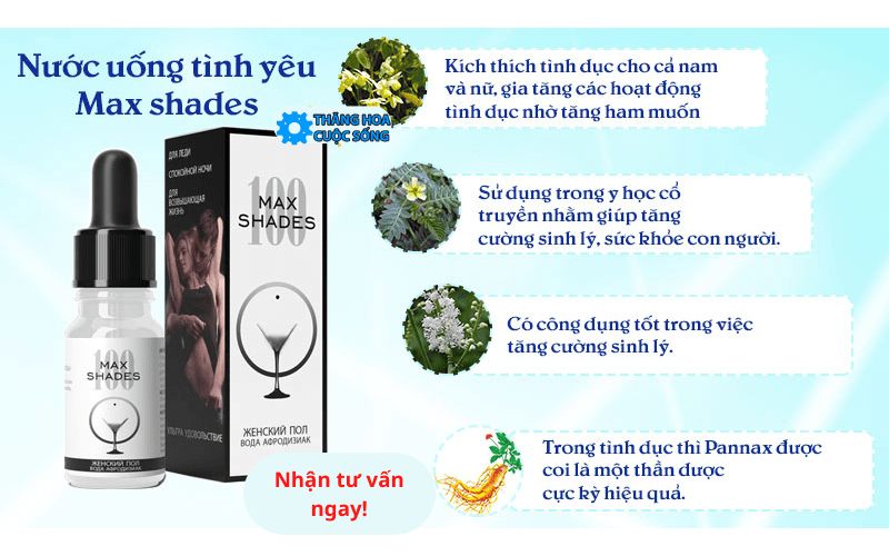 - Sử dụng 5 giọt thuốc tăng ham muốn nam Maxshades với 30ml nước lọc.